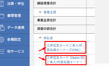 補助科目(貸方):三井住友カード